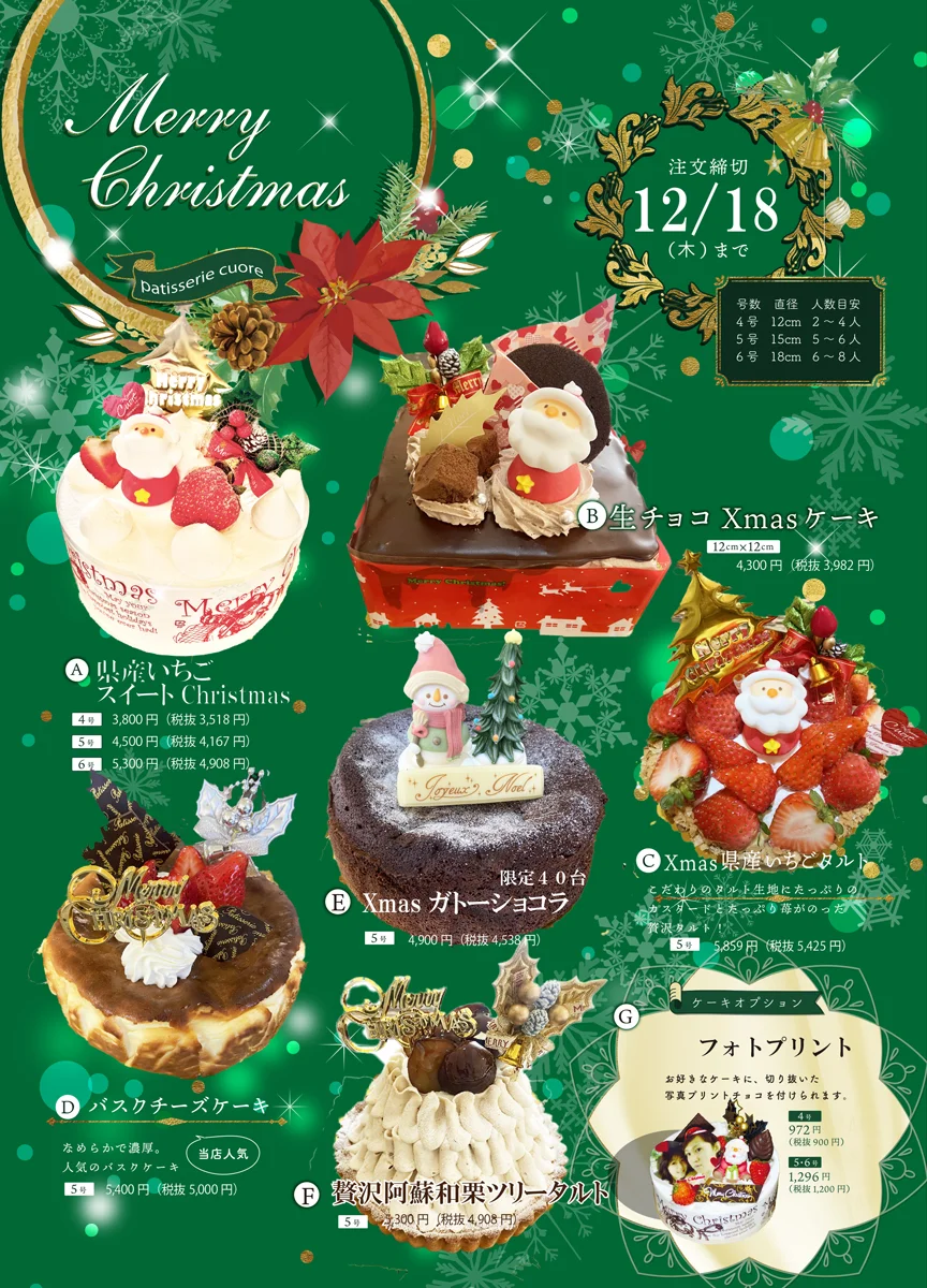 クリスマスケーキのお受け取り日は12月21日(日)~27日(土)の期間のみご指定できます。